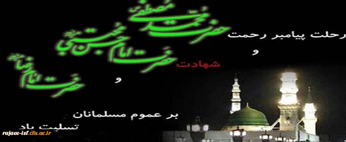 رحلت جانسور نبی اکرم، حضرت محمد مصطفی (ص) و کریم اهل بیت، حضرت امام حسن مجتبی (ع) وامام رضا (ع) تسلیت باد.