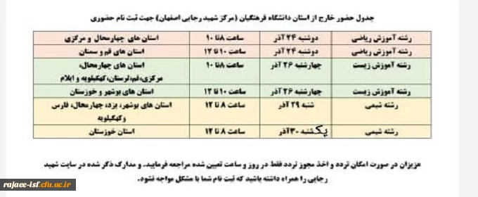 برنامه ثبت نام دانشجویان غیر اصفهانی