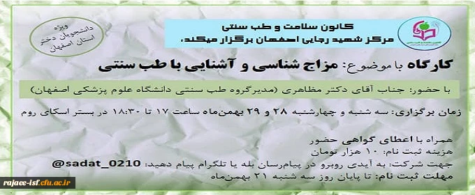 کارگاه مزاج شناسی و آشنایی با طب سنتی