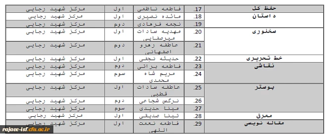 رتبه های مرکز شهید رجایی در مرحله استانی جشنواره فرهنگی