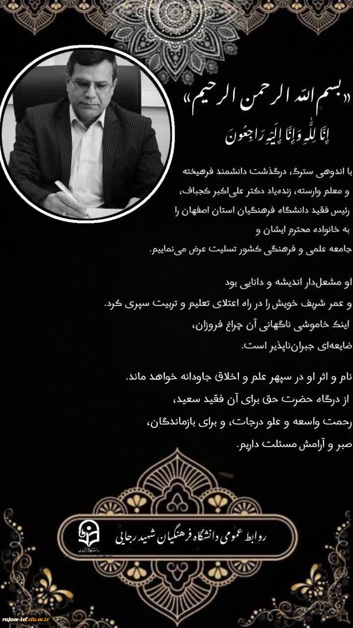 درگذشت ریاست محترم دانشگاه فرهنگیان استان اصفهان 2