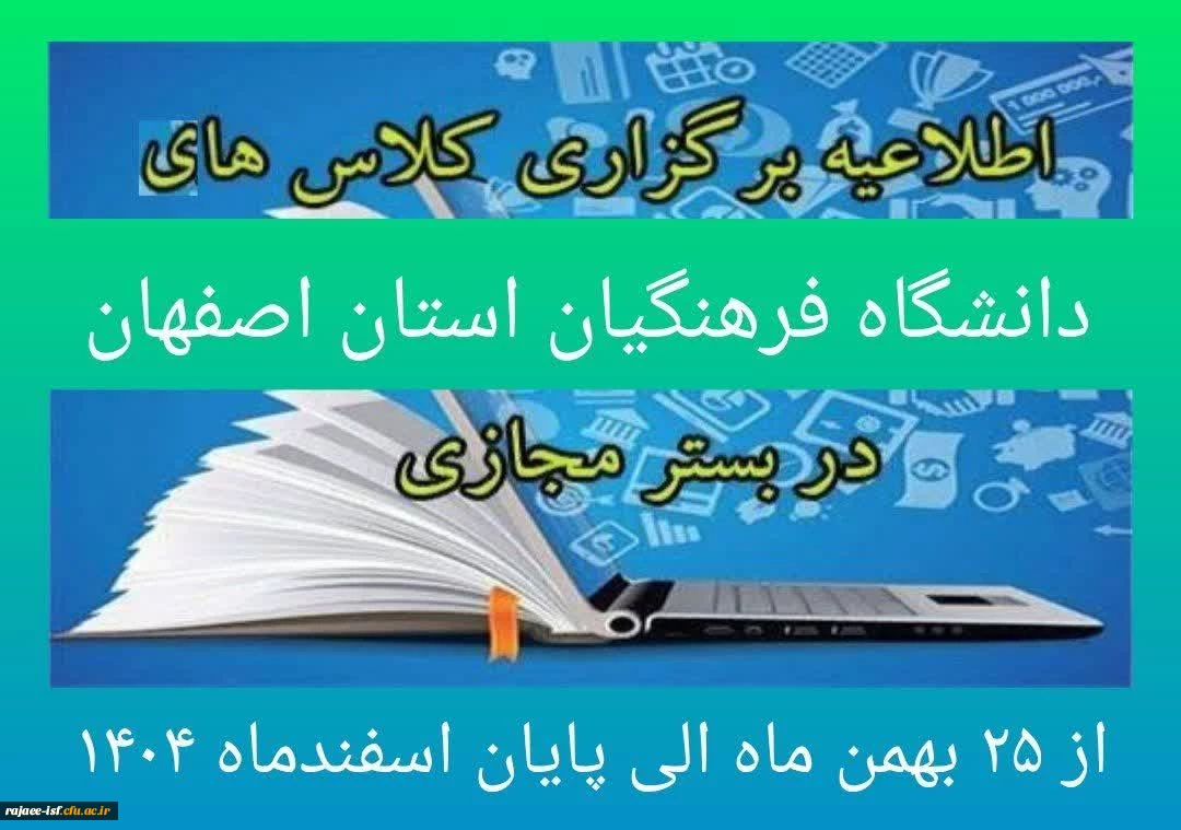 کلاس های آموزشی از ۲۵ بهمن ماه الی پایان اسفند ماه ۱۴۰۴ در بستر مجازی برگزار خواهد شد. 2